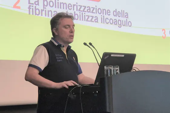 Krampfadern sind erweiterte, geschlängelte und knotig veränderte oberflächliche Venen. Dr. Daniel Zipponi erklärte den Unterschied zwischen Arterien (Blutstrom vom Herzen weg) und Venen (Blutstrom zum Herzen hin) ausführlich und wies darauf hin, dass vor allem das Blut in den Beinvenen den längsten Weg bis zum Herzen zurücklegen muss und daher zusätzliche Pumpmechanismen nötig sind. Die chronische Veneninsuffizienz gehört zu den häufigsten Krankheitsbildern weltweit: etwa 25 Prozent der erwachsenen Bevölkerung leiden unter einer Varikose oder unter einer venös-bedingten Ödemneigung. 5 Prozent davon haben ein fortgeschrittenes Krankheitsbild mit Hautveränderung. Die genetisch bzw. erbliche Ursache wird auf ca. 85 Prozent geschätzt, aber auch Berufe, wo man lange stehen oder sitzen muss, haben negative Auswirkungen auf Krampfadern. Ein Besuch beim Arzt wird empfohlen, wenn es zu Beschwerden kommt, welche sich hauptsächlich durch Schweregefühl, Schmerzen, Wassereinlagerungen oder sogar Veränderung der Haut äußern. Neben einigen konservativen Therapien wie die Kompression durch Tragen von Strümpfen oder Verbänden oder mittels Medikamenten und pflanzlichen Wirkstoffen informierte Dr. Zipponi auch über die verschiedenen operativen Eingriffe.