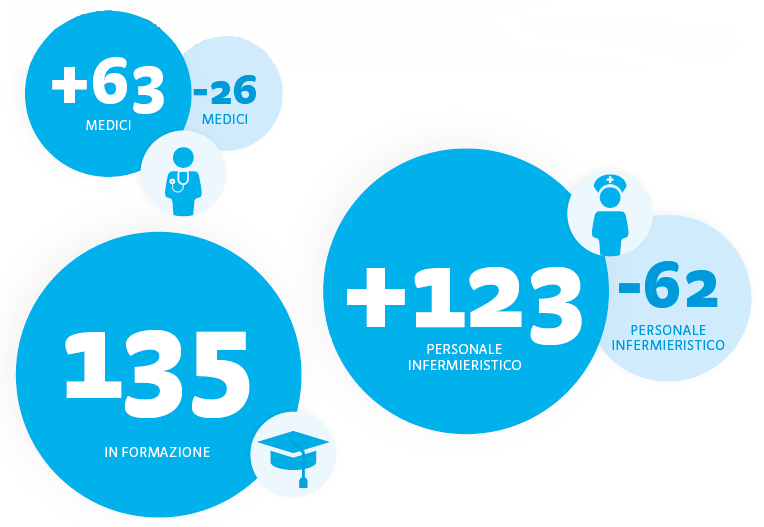 Il bilancio è positivo anche per il personale infermieristico: in 62 hanno lasciato l’Azienda nei primi tre mesi del 2023, ma al loro posto sono stati assunti 123 collaboratori e collaboratrici del settore infermieristico.